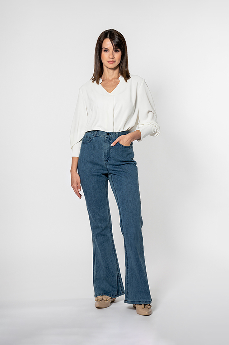 أضيفي لمسة من الأسلوب المستوحى من الطراز الرجعي إلى خزانة ملابسك مع بنطال أكوا فاشن النسائي بقصّة فلير من الدنيم، المصمم بزر وسحّاب آمن وجيوب جانبية عملية. مصنوع من دنيم عالي الجودة ليقدّم المتانة، الراحة، وقَصّة جذابة.