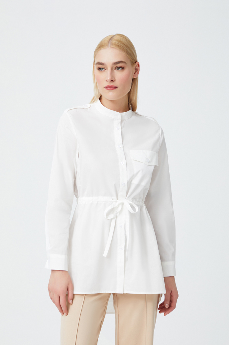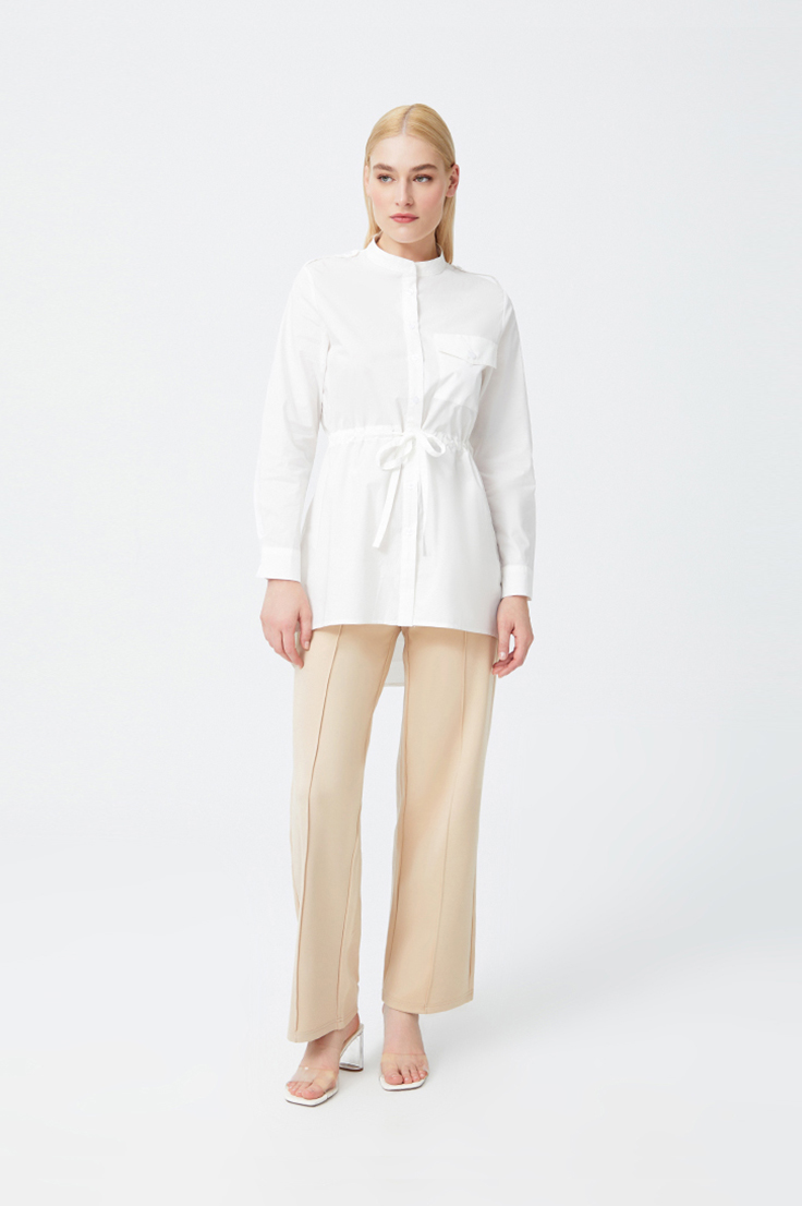 أضيفي الأناقة والرقي إلى خزانة ملابسك مع قميص أكوا فاشن النسائي بأكمام طويلة، المزود بحزام عند الخصر ليمنحكِ قصة أنثوية ومفصلة جذابة. مصنوع من قماش عالي