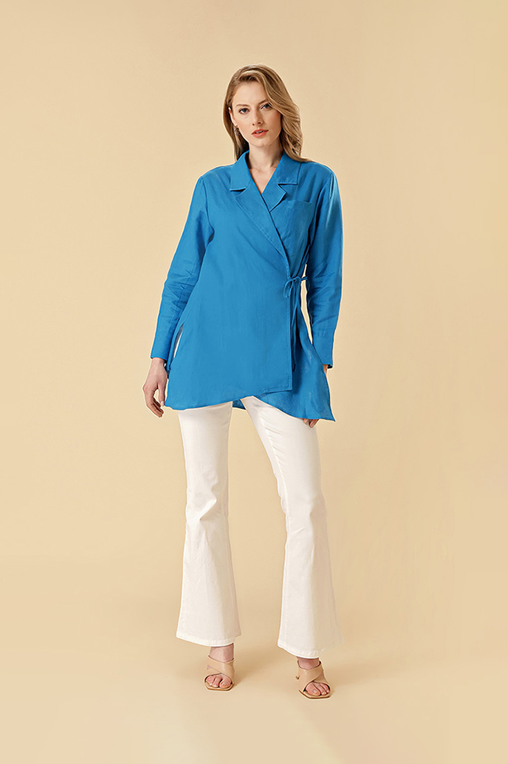 حافظي على أناقتك وتعدد استخداماتك مع جاكيت أكوا فاشن النسائي، المزود بأكمام طويلة وتفاصيل حزام أنيقة عند الخصر لقَصّة جذابة. مصنوع من قماش عالي الجودة يجمع بين الراحة، الأناقة، والتصميم العصري.
