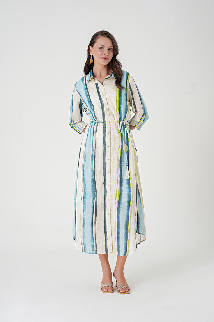 حافظي على أناقتك وراحتك مع فستان أكوا فاشن النسائي المصنوع من الكتان، المزود بسحاب أمامي وحزام جذاب لتحديد الخصر. مصنوع من كتان فاخر وقابل للتنفس، يضمن لكِ هذا الفستان الراحة طوال اليوم مع إطلالة أنيقة وعصرية.