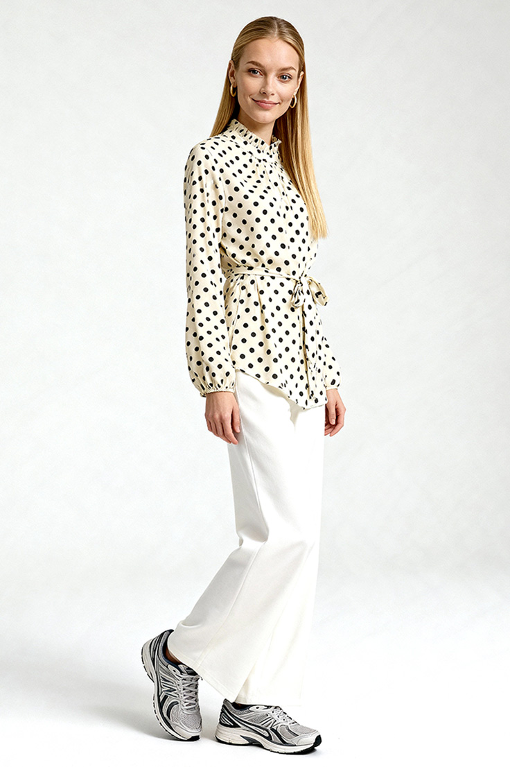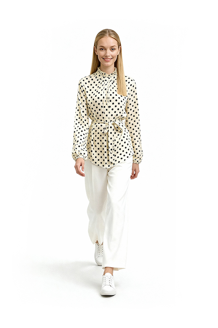 جددي خزانة ملابسك مع هذه البلوزة النسائية الساحرة. تضفي هذه القطعة لمسة أنثوية وراقية، وهي مثالية للتنسيق مع بنطلون رسمي للمكتب أو مع تنورة لإطلالة مسائية. تصميمها المتعدد الاستخدامات يجعلها قطعة أساسية أنيقة لأي مناسبة.