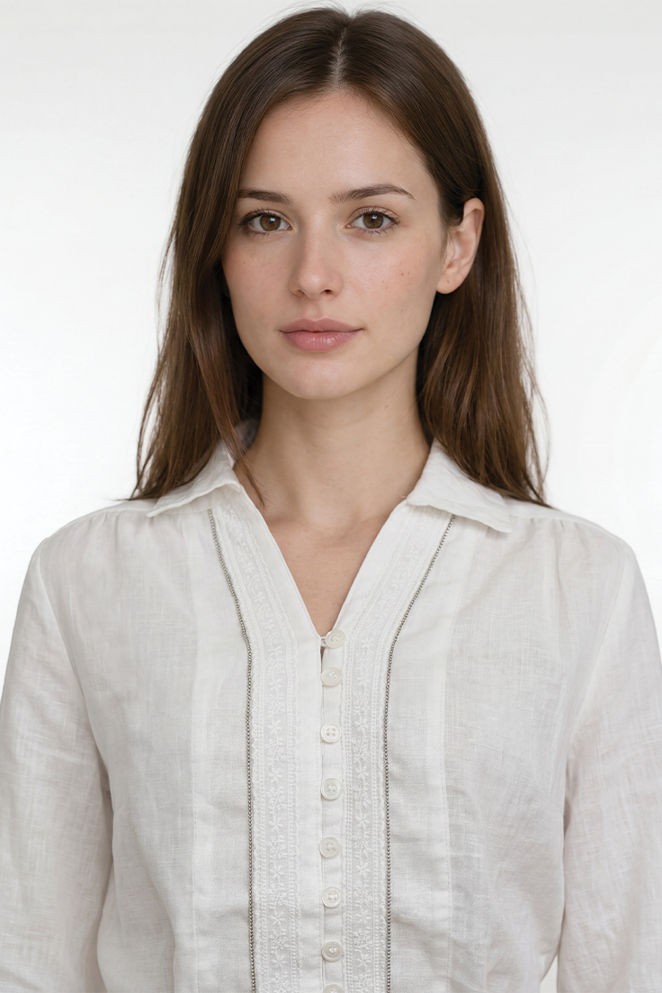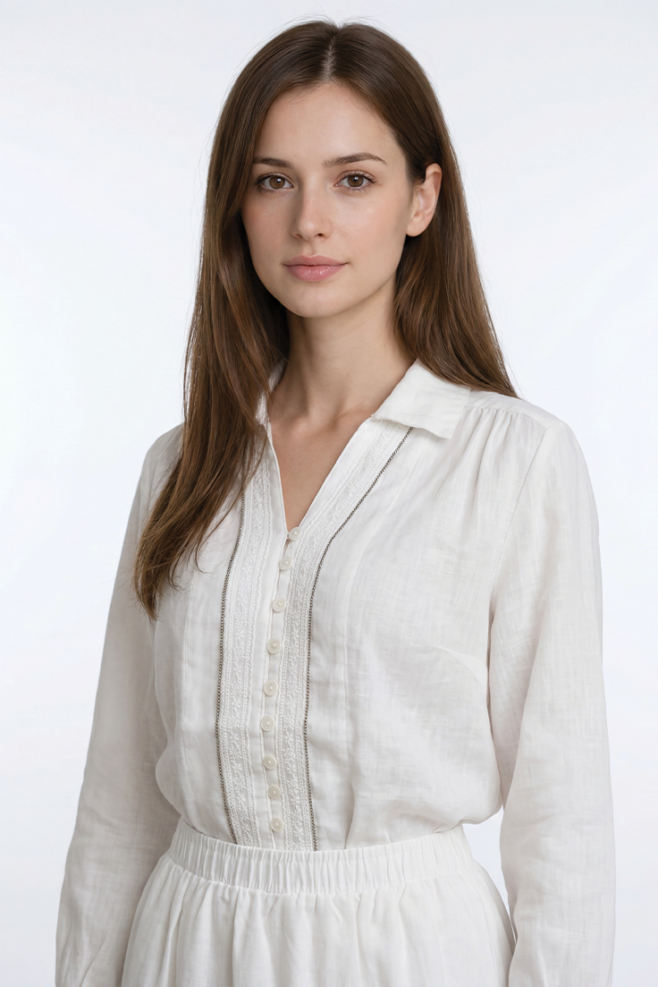 تفاصيل تطريز ناعمة في الأمام